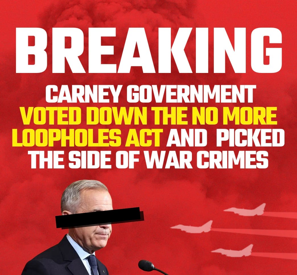 They voted down the No More Loopholes Act and picked the side of war crimes. Email your MP.